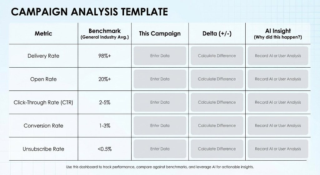 - Delivery Rate: Are you reaching the inbox? (Aim for 98%+).